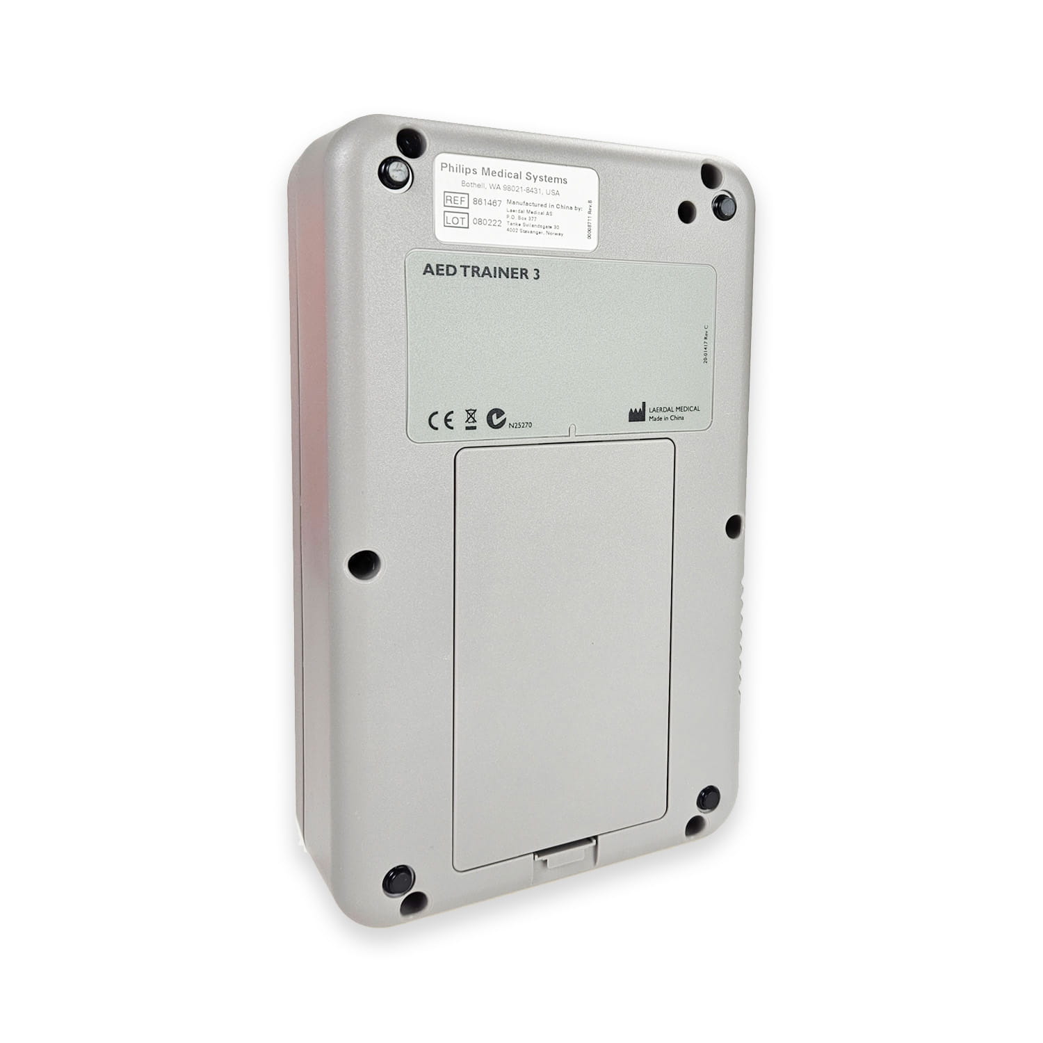 AED Trainer 3 działa z elektrodami treningowymi HeartStart Training Pads III lub Philips LINK Technology Training Pads. Elektrody HeartStart Training Pads III mogą być używane maksymalnie 100 razy, co zapewnia długotrwałe użytkowanie. Urządzenie jest łatwe w obsłudze, a zmiana baterii jest wygodna. Działa na 4 baterie AA alkaliczne, które zapewniają około 10 godzin pracy.