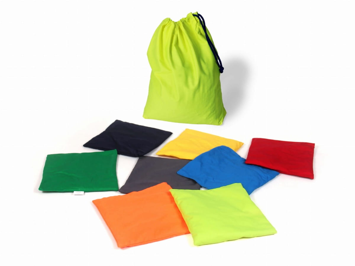 Poduszki sensoryczne umieszczone są w neonowym worku ściąganym sznurkiem. Stosowanie praktycznego worka pozwala utrzymać porządek i ułatwia przenoszenie produktu.