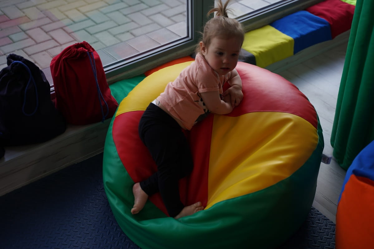 Pufa sensoryczna może być wykorzystywana do siedzenia, leżenia i dociskania.