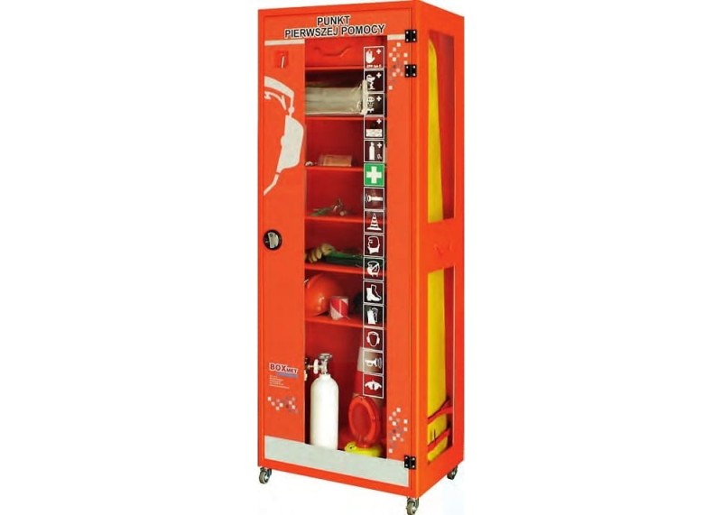 metalowa szafa + Przenośny Zestaw Pierwszej Pomocy® ZPP typ C w oddzielnej walizce