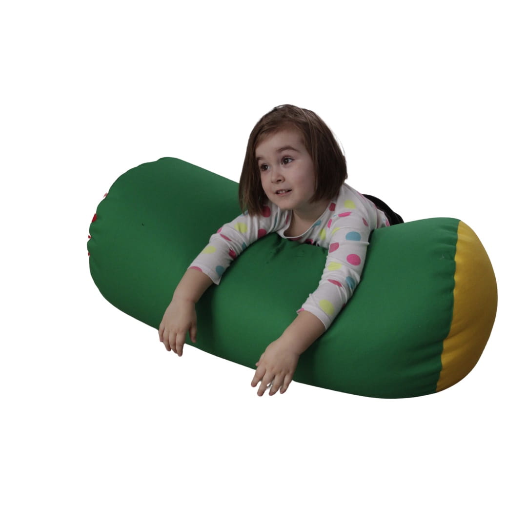 Wałek sensoryczny może być wykorzystywany do siedzenia, leżenia, wałkowania i dociskania.