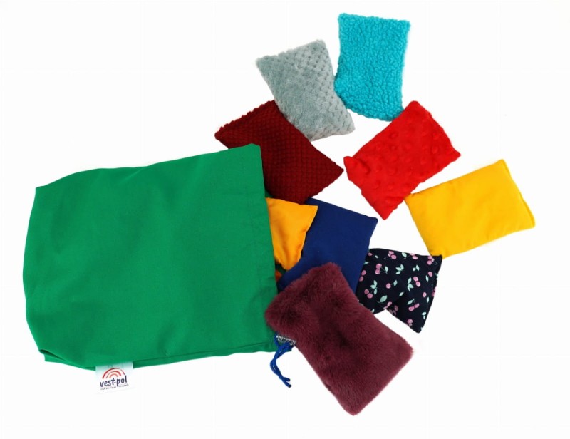 Woreczki dobierane są losowo, a my staramy się dostarczyć największą różnorodność bodźców, aby stymulować zmysły.